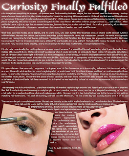 back to writing. I realize that I'm about a panel in, and have not yet gotten to the picture I selected. So I will pull in those 'extra' images. I have him slowly working to get his body more feminine, so its time to drop in makeup. that way those pictures will just flow. Once I get a little more story, I will try a test layout.